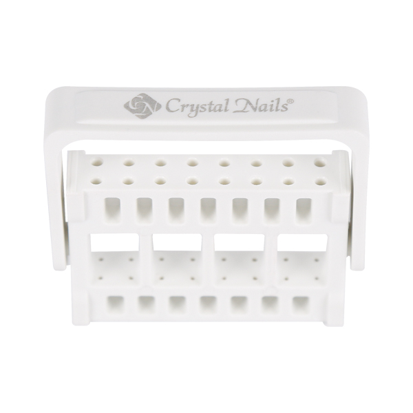 16 db csiszolófej tárolására alkalmas tartó, melynek kialakítása lehetővé teszi a csiszolófejek könnyed szállítását, asztali tárolását, valamint azok egyidőben történő fertőtlenítését.