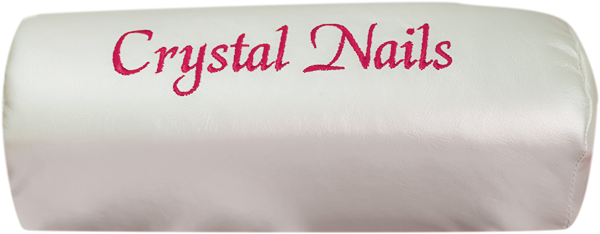 Praktikus, csinos, bőrhatású kéztámasz, gyöngyházfehér színben, varrott Crystal Nails felirattal.