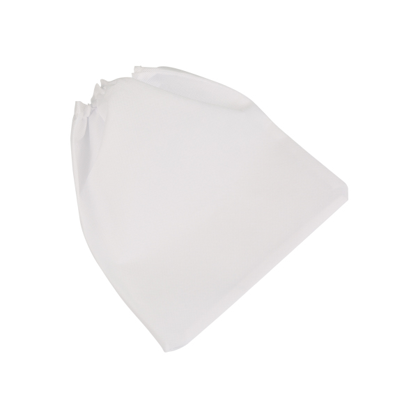 Vastag anyagú, mosható, fehér porzsák gumírozott nyakkal.